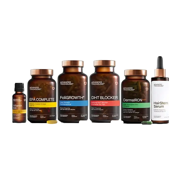 Evans, Nguyen, Fernande, 2024Lack of essential vitamins and minerals like iron, D3, and biotin can silently starve hair follicles—leading to excessive shedding and slow regrowth. Nutritional deficiencies are often reflected in thinning along the sides and back of the scalp. Our targeted nutraceuticals are designed to restore these critical nutrients at clinical strength.