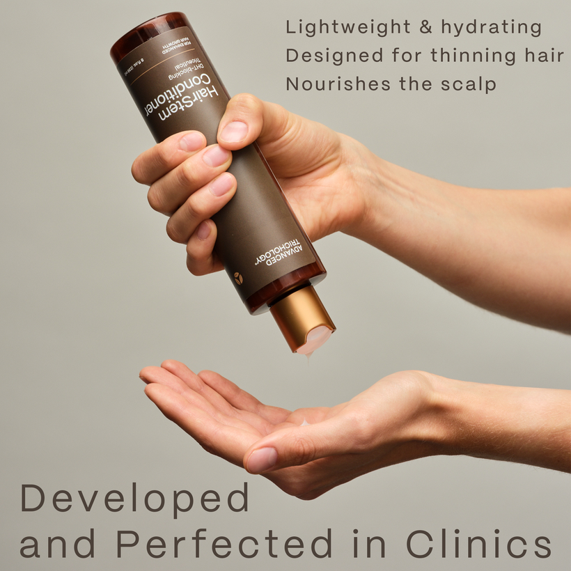 The HairStem Conditioner help your hair and scalp get the nutrients and vitamins they need. Vitamins A, B5, E and a wide range of essential oils aim to moisturize and vitalize skin and hair follicles. A unique combination with extracts from organic, plant-based ingredients like wild ginger, grape seed and comfrey root.