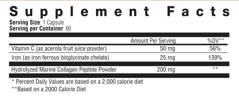 Features Ferrochel® Iron Bisglycinate, a patented chelated iron with superior bioavailability and minimal GI side effects.